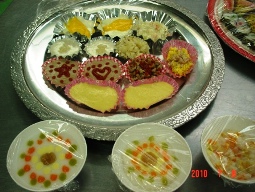 23年度はじめての誕生会の提供メニューです。 8名の参加があり、ひとりひとりこころをこめて作りました。 よろこんでいただきました。 幼児食、離乳食の完了食、初期食、共通のショートケーキを用意しました。