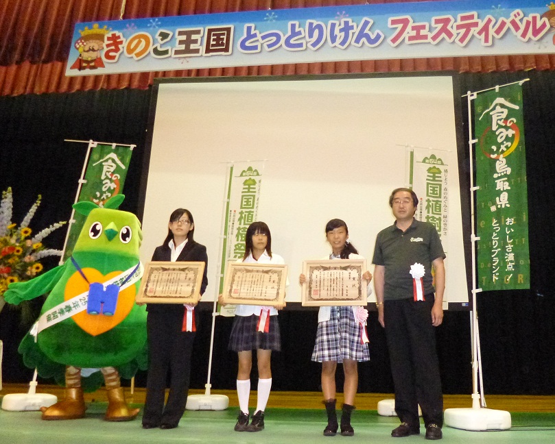 実際にコンテストの審査にも携わった実行委員会幹事長で、鳥取県農林水産部の西山部長から賞状と副賞目録が授与されました。