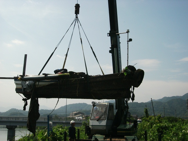 今月から河川改修工事も行われることもあり、新岩本橋から岩本橋の間の不法占用工作物や船舶等について、行政代執行及び河川法の簡易代執行(強制撤去)を実施しました。