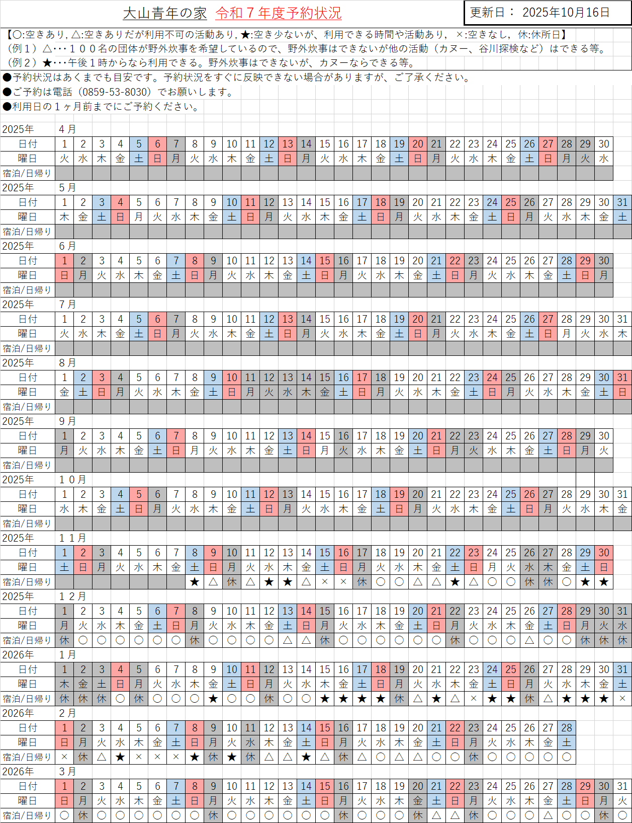 ご予約や空き状況の問い合わせは電話(0859-53-8030)でお願いします。
