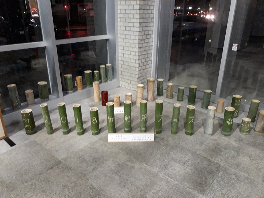平成30年2月18日(日)、とりぎん文化会館にて「竹利用フェスティバル2018」を開催しました。 講演会では、鳥取大学 佐野教授が「鳥取県の竹林の生態と管理」について、鳥取大学4年生 上宮田氏が「竹林管理におけるイノシシの有用性」について、SUNIN製炭工業(株) 山根代表取締役が「粉炭製造への竹材の活用」について、藤崎電機(株) 藤崎会長が「竹専燃バイオマス発電の取組み」について、竹とうろう職人 森下智道氏が「竹とうろうの魅力」について講演いただきました。 フリースペースでは、竹とうろう製作体験をはじめ、竹を利用する団体による製品展示やものづくりイベントが行われ、多くの方に竹に触れ、利用への理解を深めていただきました。 午後6時過ぎからは、作製した竹とうろうを中庭で一斉点灯し、竹と灯りで作られた幻想的な光景を楽しんでいただきました。 作製いただいた竹とうろうは、2月28日(水)まで県庁出入口に展示しております。ぜひご覧ください。(夜間はLED電球を点灯します。)