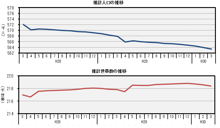 - 推計人口 563,377人 (男 269,257人、女 294,120人)