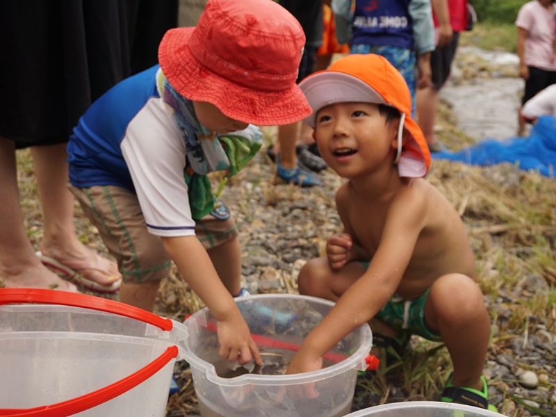 福園地区(8月6日)井出草刈り、川遊び交流会