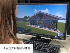 3DCADを利用して、建築図面やリアルなイメージ図を作成する高度な技術を身につけます。また、動画の作成やプレゼンテーション資料としてまとめる技術も身につけます。