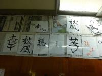 講師の先生より緊張をほぐす言葉や筆の面白さ等を伺い、前半は「秋風」という字を行書で練習しました。先生の手本をまねて、楷書よりスピード感を持って勢いよく書いてみました。「秋」の左は三角形、「風」の下は台形をイメージしてというアドバイスを受け、何度も何度も書いているうちに、みんなが上達してきました。「書き順を間違えた」「点と点が離れすぎた」「中心がずれた」などの反省の言葉が、次第に「線がきれいになった」「筆の特徴がでてきた」「上手になったな」など、ほめ言葉や自信につながる言葉にかわってきていました。