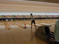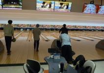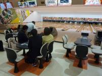 4グループに分かれ緊張の中でスタート。みんなが目印のスパット(レーン手前にある三角)を狙って投げますが、なかなか思い通りにいきません。「えっ~」「うそ~」「もうちょっとだった」と悔しがる場面や「当たった」「すごい」と笑顔でガッツポーズの場面の連続でした。ストライクやスペアが出た時には、みんなが拍手とハイタッチで喜び合い、けっこう盛り上がりました。「リラックスしてよ」「ナイスボール」「ねらい通り?」「ドンマイ」など、互いに声をかけ合いながら2ゲームを投げきりました。