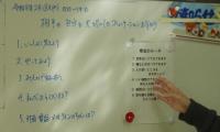 今回は「時短」を意識して取り組みます。タマネギ、ベーコンなど具材を細かく切り、ケチャップやコンソメでしっかり味のケチャップライスを炊飯器で炊きあげます。卵でふんわりオムライスの完成ですが、最後に今回の工夫、ケチャップでイラストや文字を描いて「メッセージ」を入れます。「何を描こうかな?」「これいいよね」「ケチャップが流れる」「おいしそう」など、つぶやきが聞こえるうちにメッセージ・オムライスが完成。卵も上手に焼け、みんなでおいしくいただきました。