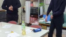 もともと恵方巻は、「無病息災、家内円満、縁を切らない」など、願いを込めた縁起物として食べられています。たまご・キュウリ・ちくわ・たくわん・お肉などの具材を入れ、「卵焼きの厚さは?」「キュウリきれいに切れてる」「巻きす上手く巻けないなあ」などとつぶやきながら、福を招くことができるよう願いを込めて巻いていきます。恵方巻が完成すると、今年の恵方「南南東」を向いて、「幸福を一気にいただこう!」と縁起を担ぎながら美味しくいただきました。同時に「節分」の豆で豆つまみ大会も行い、この時期の日本独自の風習を体験しました。