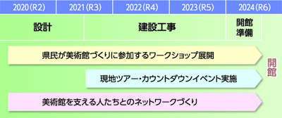 という三つの役割を担うことに。これらの多様な「つくる」活動を展開させることから「未来を『つくる』美術館」がコンセプトです。県は、設計・建設が本格化する本年度、「美術館整備局」を現地に設置。地域や学校との連携、さらに文化・観光面での県全体の取り組みも進めます。