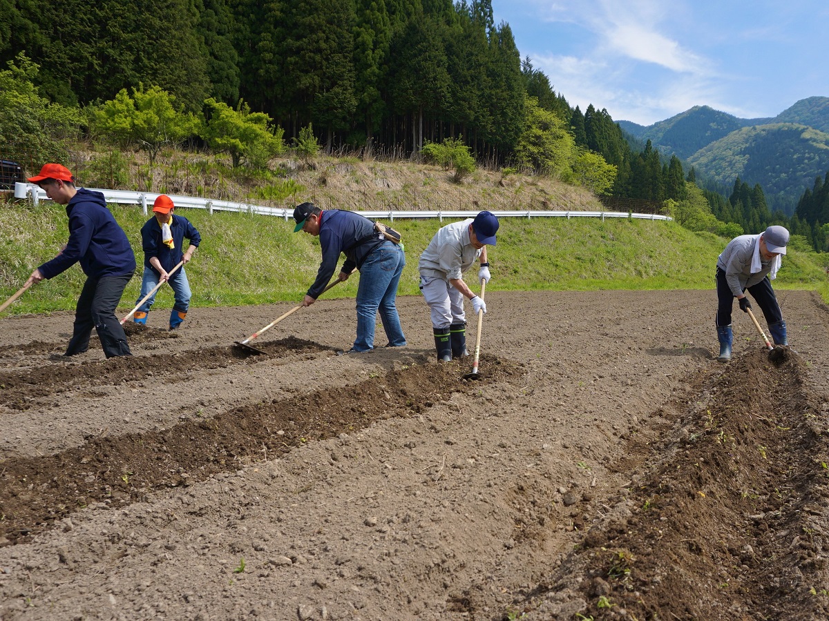 小船地区(5月12日)ジャガイモの植付け、農地周辺の草刈り