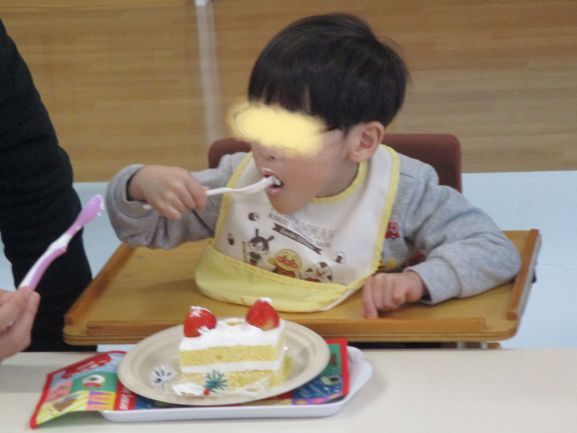クリスマスケーキは乳製品を使用していないもので、みんなでおいしくいただきました。