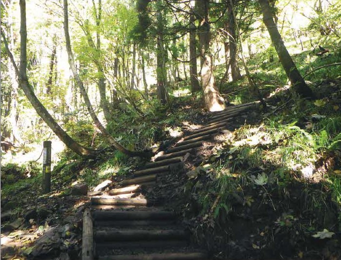 氷ノ山登山道の氷ノ越コースのキャンプ場~氷ノ越区間について、老朽化した木製階段の改修や標識の改修を行いました。