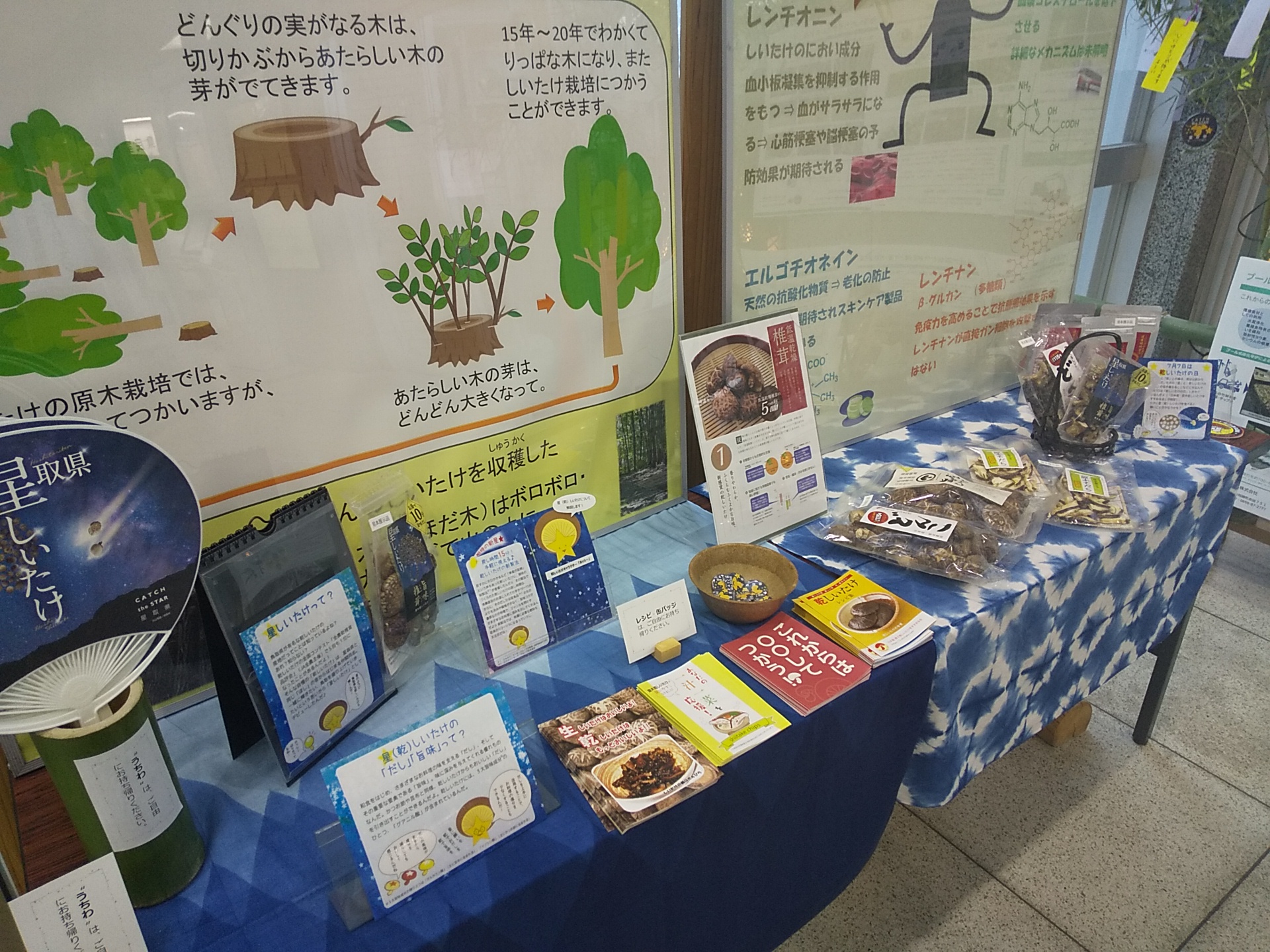 「乾し(ほし)」と「星(ほし)」の音が重なることから七夕に6月から7月が「旬」な乾しいたけの需要拡大を図るため、鳥取県庁 本庁舎ロビーで展示を行っています!