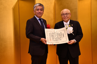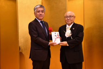 株式会社エスジーズから「郷土づくり支援金」として県に対し寄附金贈呈のお申し込みがあり、令和4年10月11日(火)、同社代表取締役社長 大野木 昭夫 氏の国土交通大臣表彰受賞記念式典に併せて贈呈式がありました。