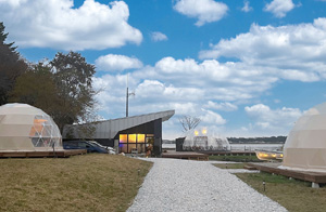 昨年11月、湖山池に浮かぶ青島にオープン。島ならではの湖上の眺めや満天の星空は格別。まるでリゾートホテルのようなドームテントや充実のグルメも魅力。