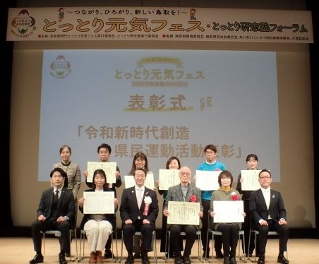地域を元気にするための県内の優れた地域づくり活動を表彰する「令和新時代創造県民運動活動表彰」について、令和5年度は38件(一般部門31件、若者活動部門7件)の応募の中から最優秀賞1件、一般部門優秀賞3件、若者活動部門優秀賞2件及び協賛企業賞(あいおいニッセイ同和損保賞1件、大塚製薬賞1件)を決定し、2月4日(日)に表彰式を行いました。