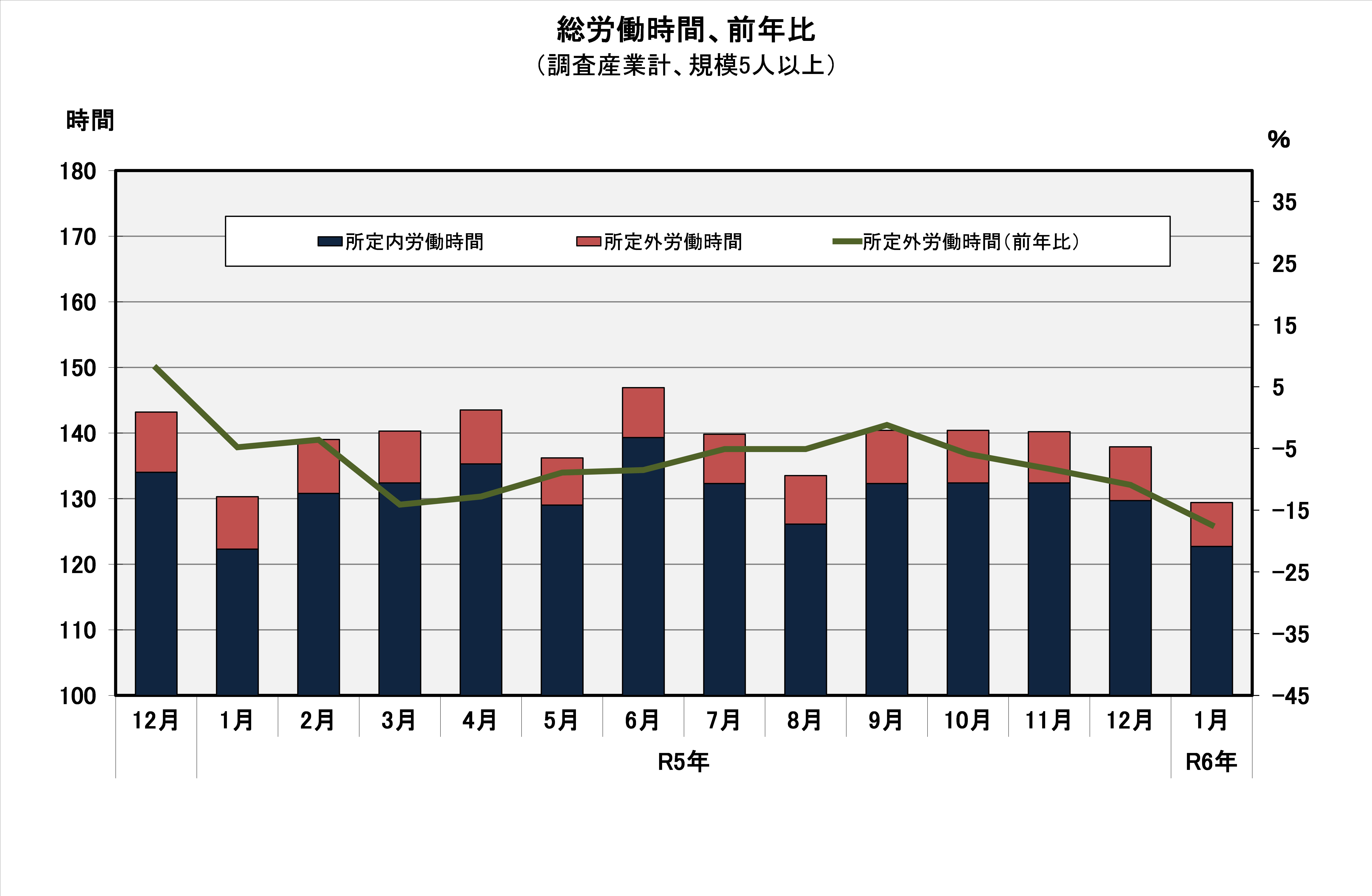 2 労働時間 - 総実労働時間は129.4時間(規模5人以上・調査産業計) -