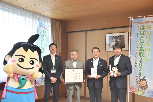 この度、株式会社さんびる様からねんりんピックはばたけ鳥取2024実行委員会に、広告協賛金をいただき、感謝状の贈呈式を開催しました。