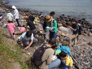 何度も講師に問合せて、何とか8種類見つけた方や、見つけられなかった方もいましたが、一通り海岸でのハンティングを終え、大岩交流センターに戻ってきました。