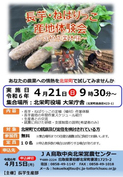 長芋・ねばりっこ産地体験会 ~定植作業体験~ スケジュール