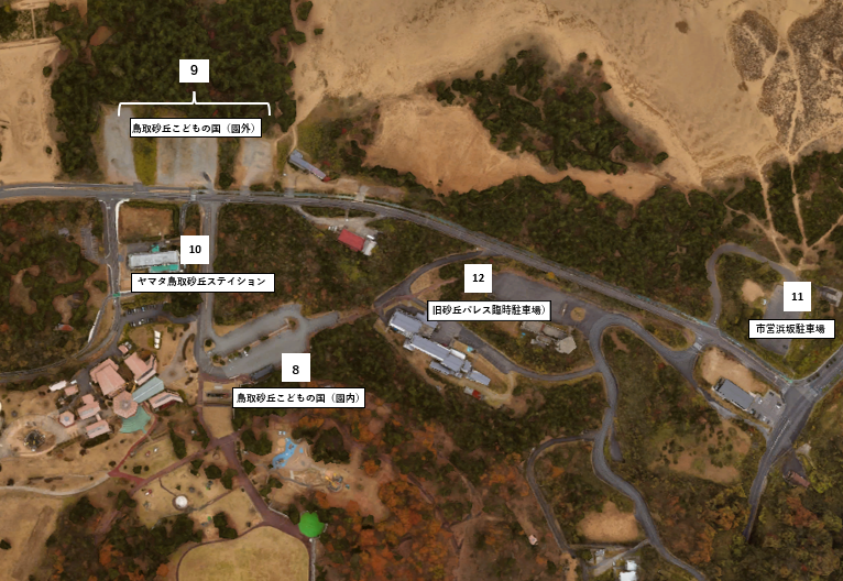 12 旧砂丘パレス臨時駐車場 …駐車のみのご利用でお願いします。※建物内立入禁止