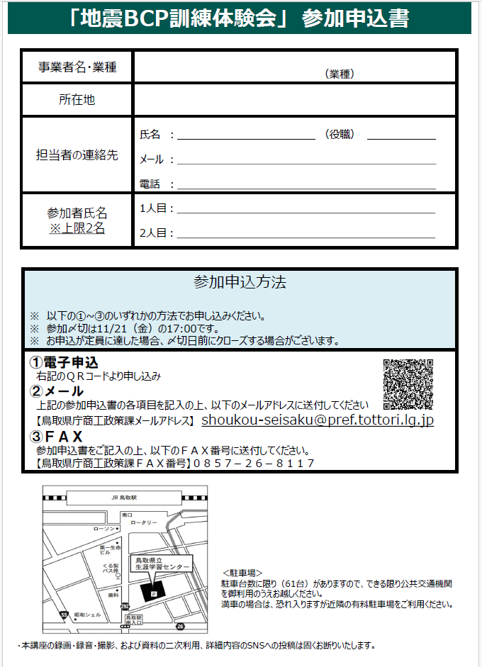 鳥取県商工労働部商工政策課(担当:長谷川) TEL 0857-26-7565