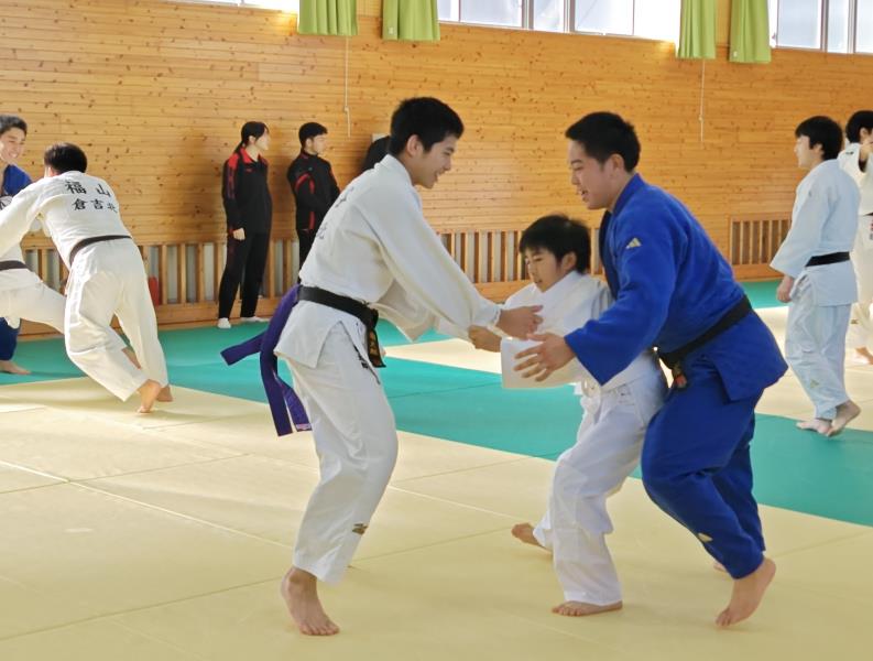 指導者:奥谷祐介(県柔道連盟)、倉吉北高校柔道部員