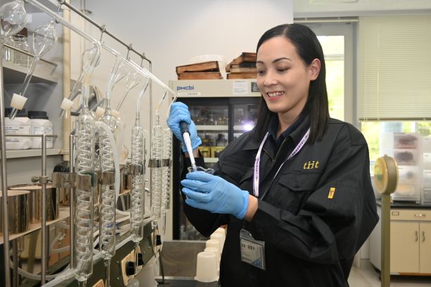 食品分野の研究者として、また母として、多忙な日々を前向きに突き進む。自分の発想を形にできる職場で、新しい技術を生み出し、活用につなげる挑戦を続けている。