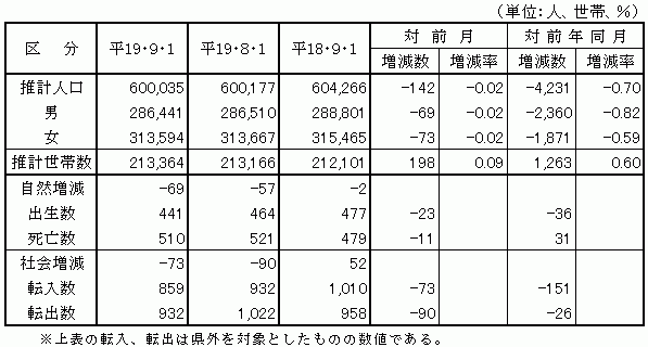 ○推計人口は、前月と比べ142人の減少。 ○県外転入数は、前年同月と比べ151人の減少。 ○出生数、死亡数は、前年同月と比べ出生数が36人の減少、死亡数が31人増加。