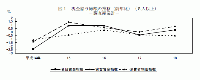 現金給与総額の実質賃金指数は100.8で、前年比0.8%増となった。