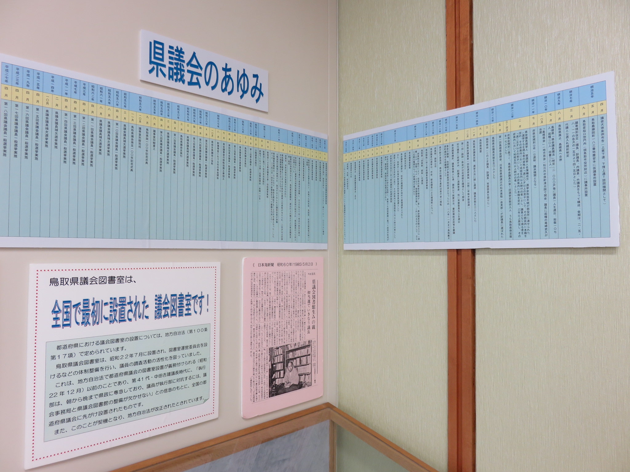 貴重な写真と資料で、鳥取県議会の歴史をご紹介しています。また、本会議の開催に合わせて、企画展も開催しています。お立ち寄りの際は、展示コーナーもぜひ、ご覧ください。