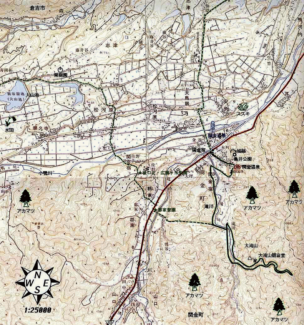 この地図は、建設省国土地理院長の承認を得て、同院発行の2.5万分の1地形図を複製したものを転写したものです。(平9 中複、第99号)