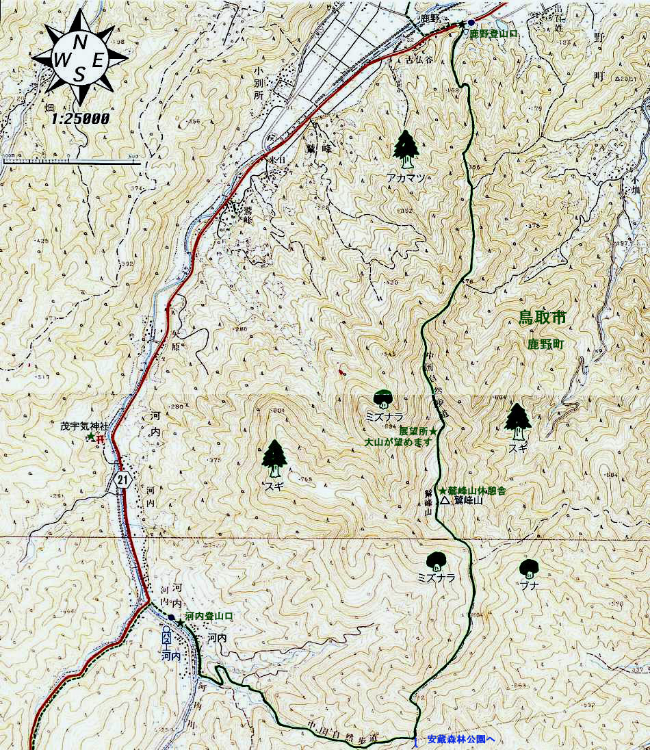 - 鹿野登山口~鷲峰山頂上 約4時間
