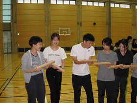 当日は大雨台風の日ではありましたが、鳥取短期大学内の体育館で体験型レクリエーション活動を通じて多くのことを学びました。声を掛け合って協力し、真剣に取り組む姿や挑戦する姿などみんなとても輝いていました。