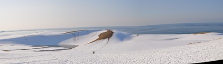 ところが、下が16時の砂丘の写真で、この暖かさで雪が融けて砂の見える部分が増えました。