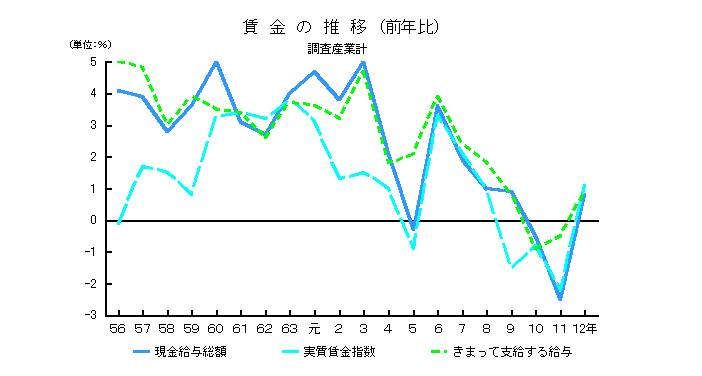 内訳は、きまって支給する給与が86.7、特別に支払われた給与が81.2であった。