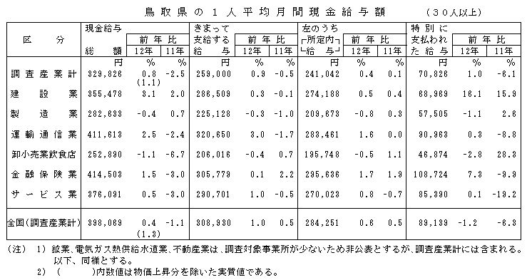 内訳は、きまって支給する給与が259,000円、前年比0.9%増、ボーナスを中心とした特別に支払われた給与が70,826円(年間849,912円)で、前年比 1.0%増となっている。