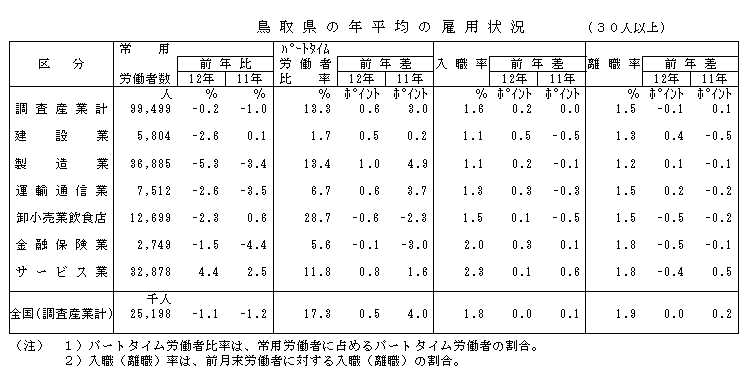 全国のパートタイム労働者の比率は、調査産業計で17.3%となり、鳥取県より4.0ポイント高くなっている。