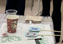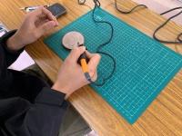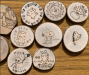 大山青年の家の方に指導していただき、ウッドバーニングの体験をしました。ウッドバーニングとは、木製の板に電熱ペンを使って文字や絵柄を焼き付ける技法です。やる前は難しそうに感じましたが、やってみると意外と簡単で面白い!そして、いつの間にかみんな作品作りに没頭していました。結構長い時間板に向き合っていましたが、思い思いにデザインする時間はとても有意義でした。できた作品は部屋に飾ったり、コースターとして使ったり、家族へのプレゼントにしたりしました。