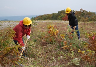これまでに植栽した木が育つよう下刈り作業を実施