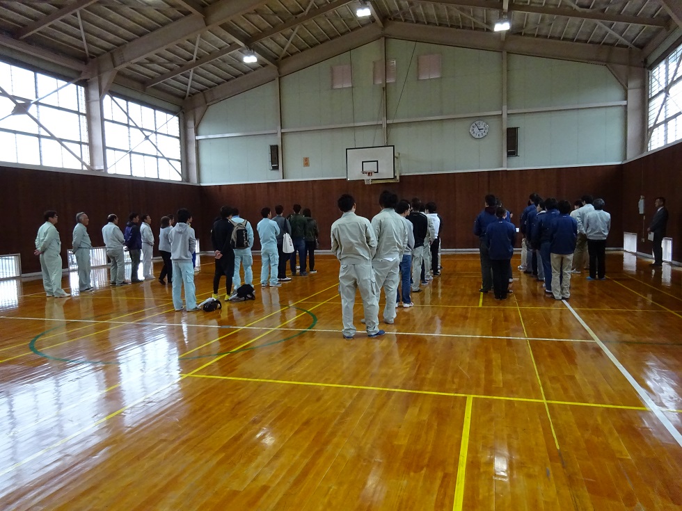 今回は1階喫煙室で火災が発生したということでまずは体育館へ避難します。