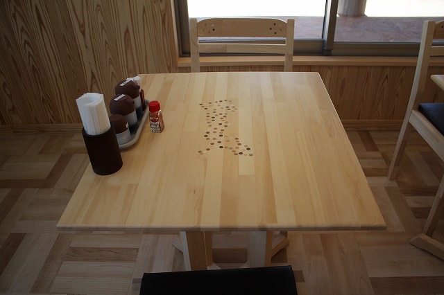 テーブルの天板にはドットが・・・。よく見ると、鳥取県の形(これは日野郡側から見た角度)になっています。 実は、このレストランの家具は、にちなん道の駅シリーズ第3号でも御紹介した白谷工房の寄せ木細工なのです。 他のテーブル一つ一つにも様々なドットが、寄せ木の手法で嵌め込まれています。 これらのテーブルをつなぎ合わせると、日南町の形が現れるそうです。 ほっとすでパーティーを開く方に、日南町の形を見ながら楽しんでいただきたいと考えて、駅長と白谷工房がアイデアを出し合って作成されたオーダー家具だそうです。 レストランには、ジビエをコンセプトにしたメニューもあります。 こちらは、米子のラーメン店「彩龍」とコラボした、猪肉の「彩龍 山賊丼」です。 このメニューは、日南町で猪が捕獲され、それを材料に彩龍が叉焼に仕上げた時だけに巡り合うことができるそうで、人気となっているそうです。 味わってみたい方は、念のため事前に道の駅にお問い合わせくださいね。(ほっとす担当者談)