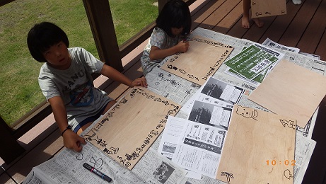 8月22日、日南町のなかよし教室で看板作成とミニツリーハウスづくりを行いました。