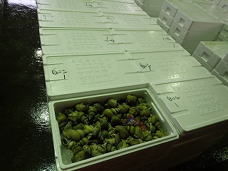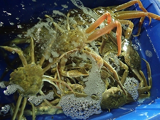 本日をもって若松葉がに(脱皮6カ月以内の雄のズワイガニ)の漁期が終了します。 今漁期の若松葉漁は海況が悪く、漁獲量は水産試験場の見通しとは異なり、前年より少なくなったと思います。時化以外にも漁期序盤は隣県での大量漁獲等による価格暴落で若松葉がに以外を狙った操業をしたり、大雪による流通ストップなど、資源量ではない漁獲のマイナス要因が重なった漁期となりましたが、考え方を変えれば、多くの取り残しが出来、来漁期の松葉がに(脱皮後1年以上経過した雄のズワイガニ)の漁獲につながるのではと期待しています。 さて、賀露の若松葉がにの最終漁ですが、隠岐西方海域で好調な漁獲となり、定数いっぱいの水揚げでした。来漁期の隠岐西方海域に期待が持てる感じで、漁業者の顔にも明るい表情が見られました。 今回メインで測定を行ったソウハチ(えてがれい)と若松葉がにでしたが、漁獲の中心はアカガレイで、そのほか松葉がに、ハタハタ、ニギス、クロザコエビ(もさえび)等でした。 ハタハタの漁獲の中心は2歳魚でした。