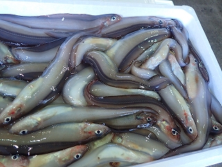 主な漁獲物は、アカガレイ主体で、そのほかエビ類、ハタハタ、アカムツ(のどぐろ)、写真にはありませんが、ニシン、マダラ、深海性バイ類等が水揚げされていました。