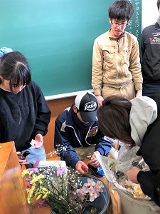 卒業式後は最後のお別れ会を花きコースの専攻教室で行いました。