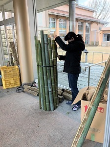 花きコース2年生の卒業記念作品として、玄関の装飾を行いました。