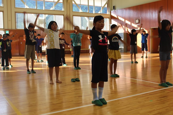 キッズアドベンチャー最終日は、鹿児島弁のラジオ体操でスタートです。