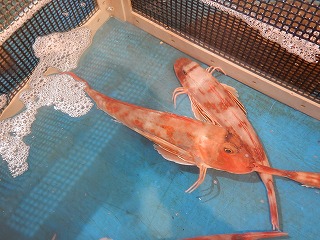 そのほか、活魚では刺網のイシダイ、釣のホウボウ(こと、あおばね)、かご網のウマヅラハギ(ちゅーかー)などがありました。