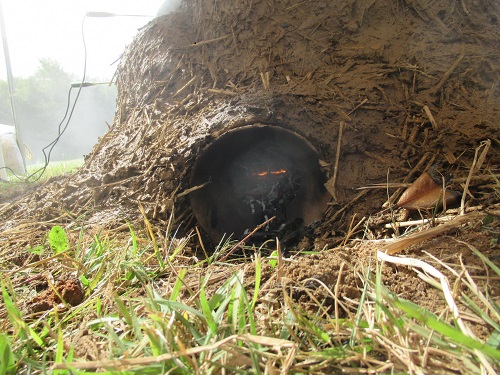 ワラの上に泥を塗り、「覆い焼式野焼き」の準備完了です。